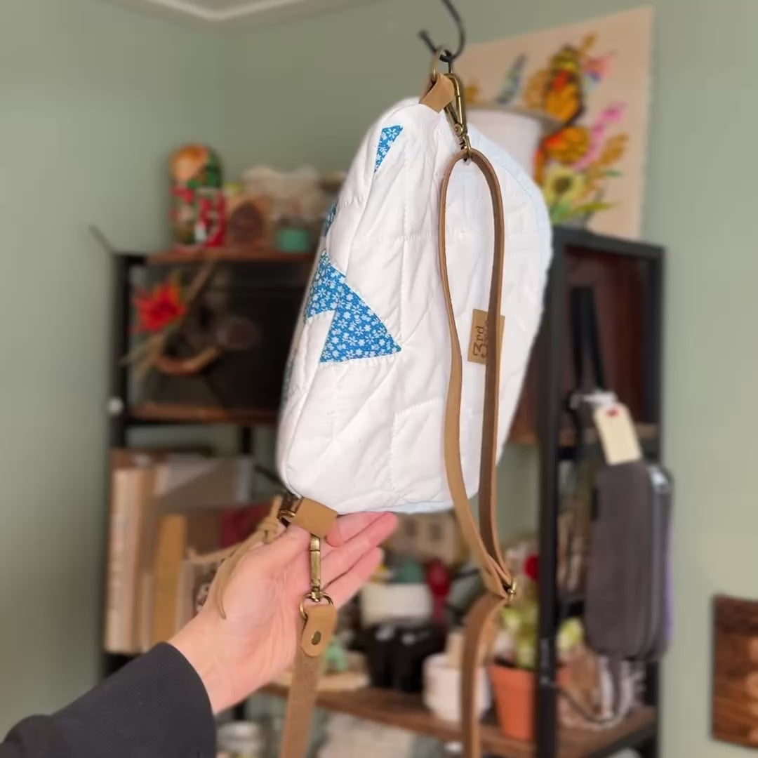 Constructed from upcycled quilt scraps in combination with new notions including a high quality zipper and hardware.