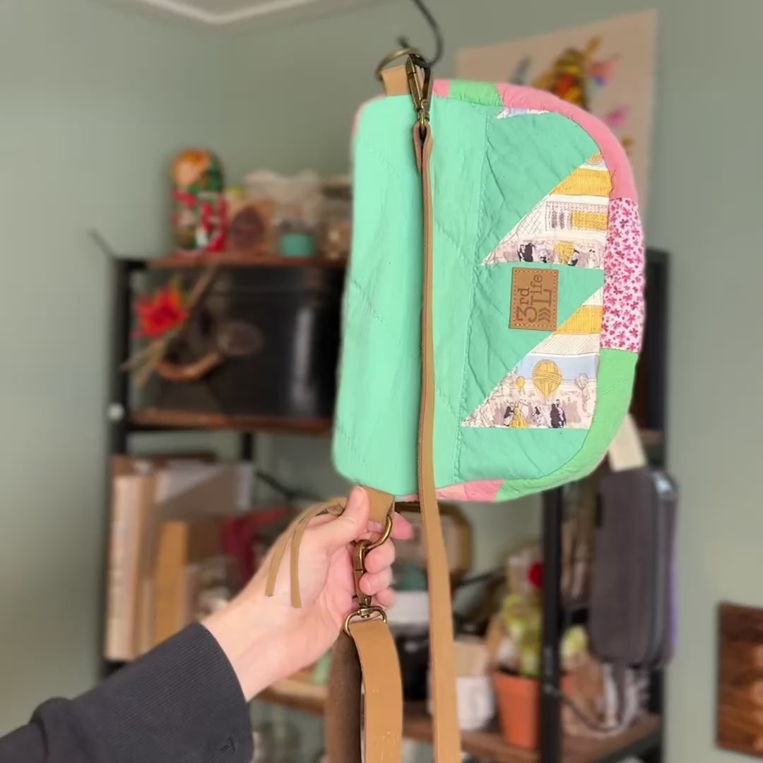 Upcycled Quilt Bag - Seafoam Triangles
