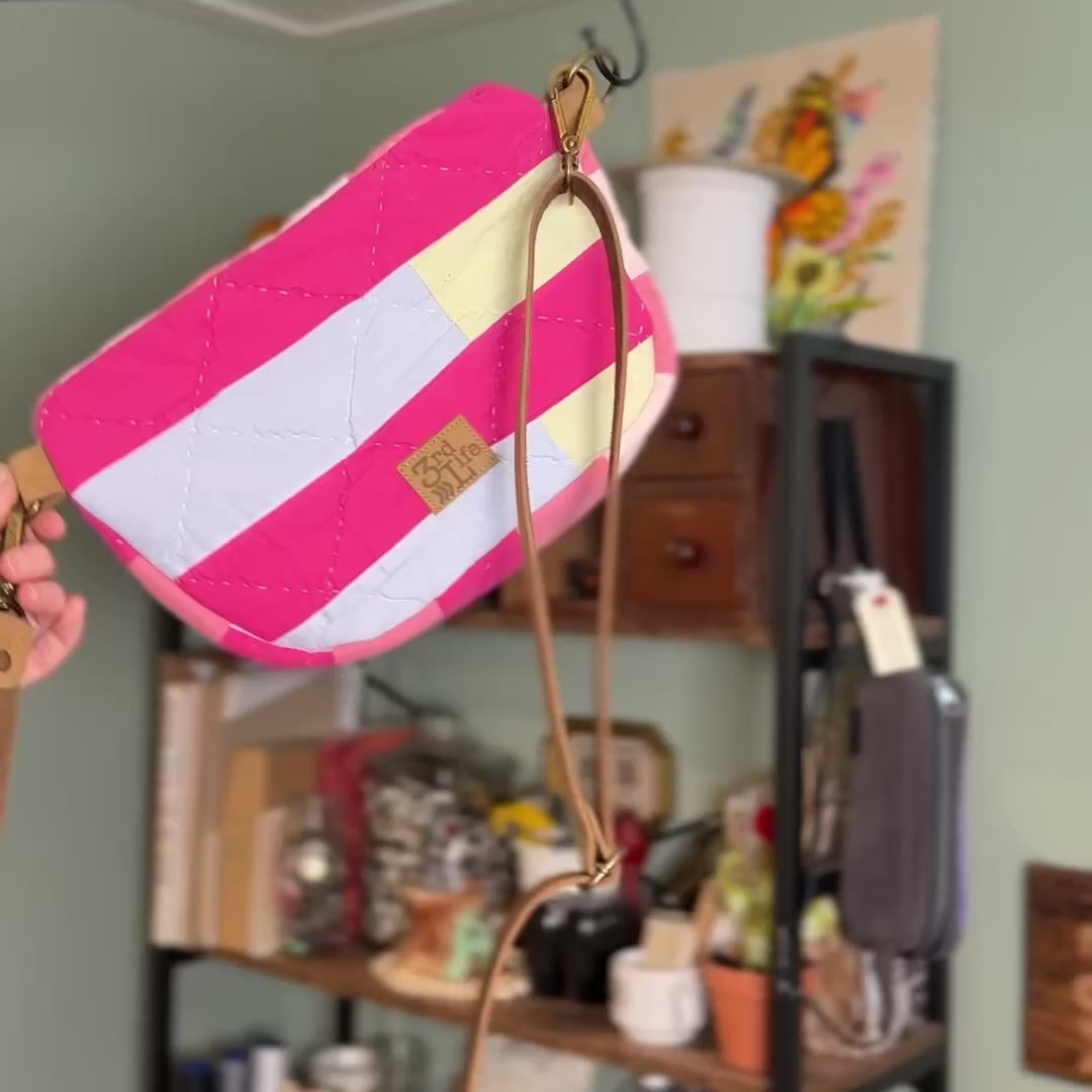 Constructed from upcycled quilt scraps in combination with new notions including a high quality zipper and hardware.