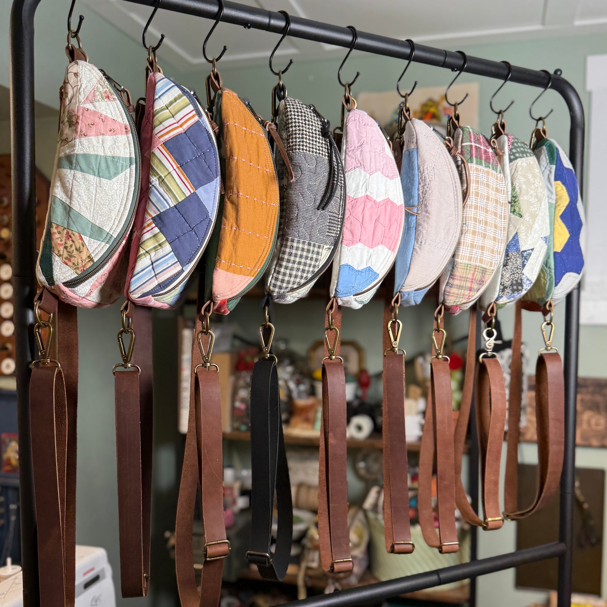 Constructed from upcycled quilt scraps in combination with new notions including a high quality zipper and hardware.