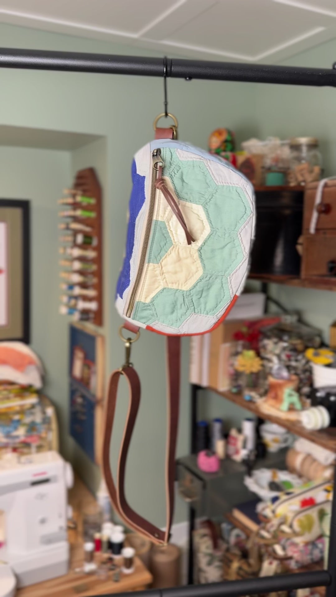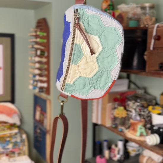 Constructed from upcycled quilt scraps in combination with new notions including a high quality zipper and hardware.